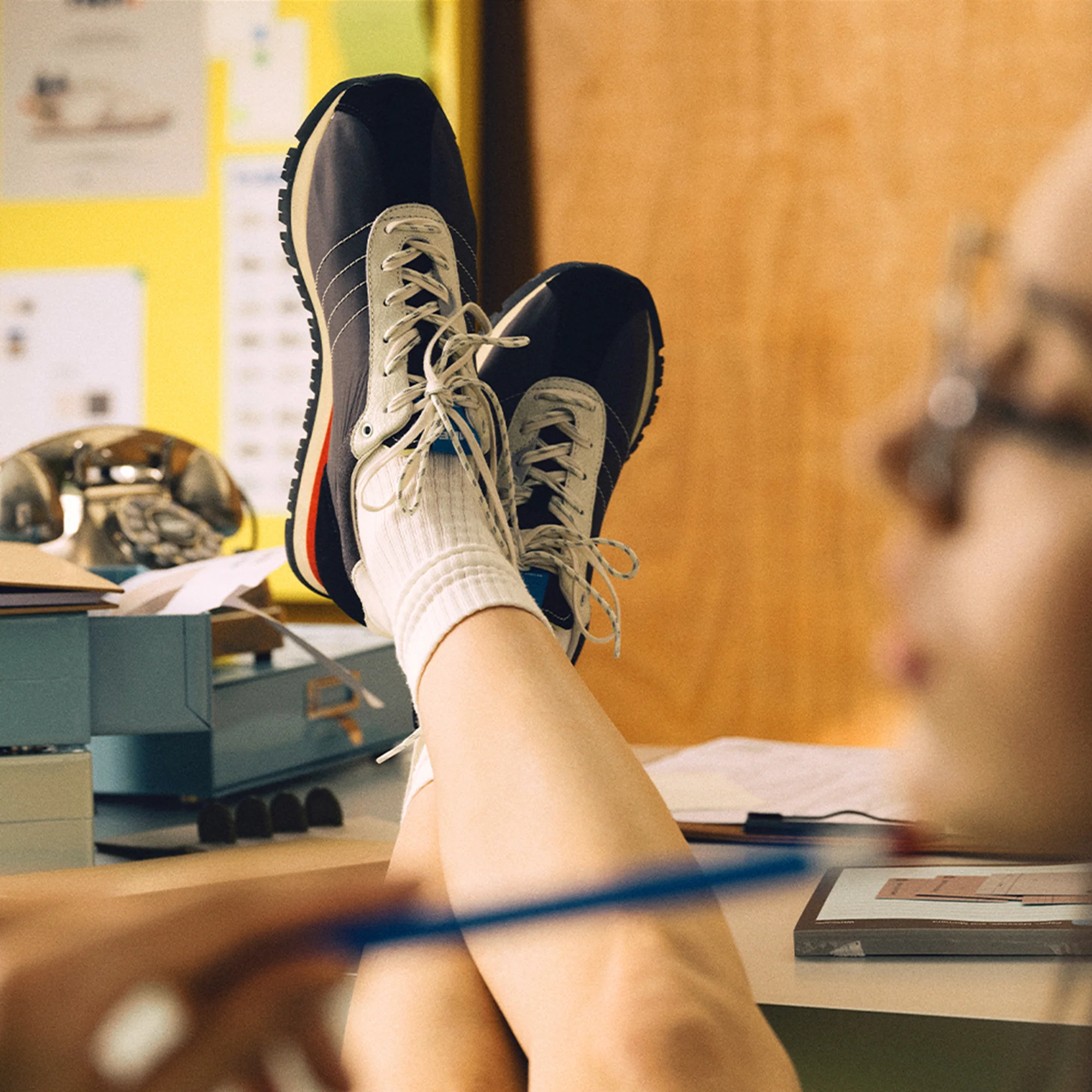 A 1960s-inspired runner silhouette, built with crackled leather and nylon paneling for a vintage-meets-functional feel. The simulated stone-textured outsole grounds the design, while an Ortholite and cork dual midsole provides breathable cushioning. Finished with silver-dotted laces for a subtle accent.