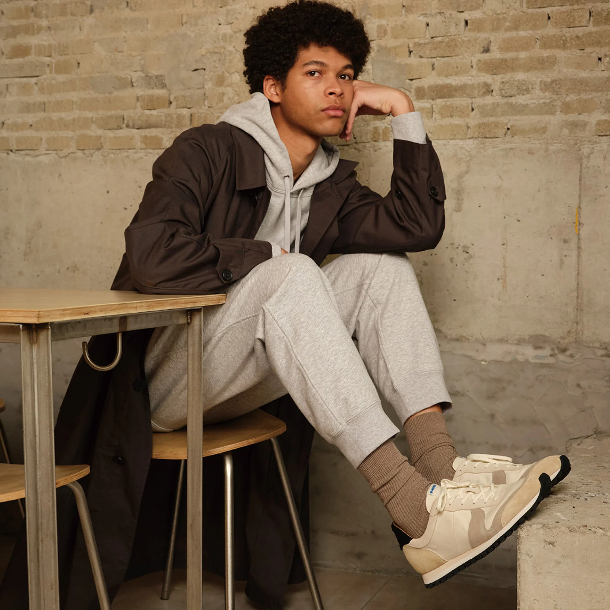 Crafted from suede with breathable nylon canvas, this runner balances vintage texture with everyday wearability. A cork midsole with moisture-wicking design works in tandem with a lightweight EVA–rubber composite outsole for all-day comfort. The refined, tapered silhouette highlights an elegant, streamlined profile.