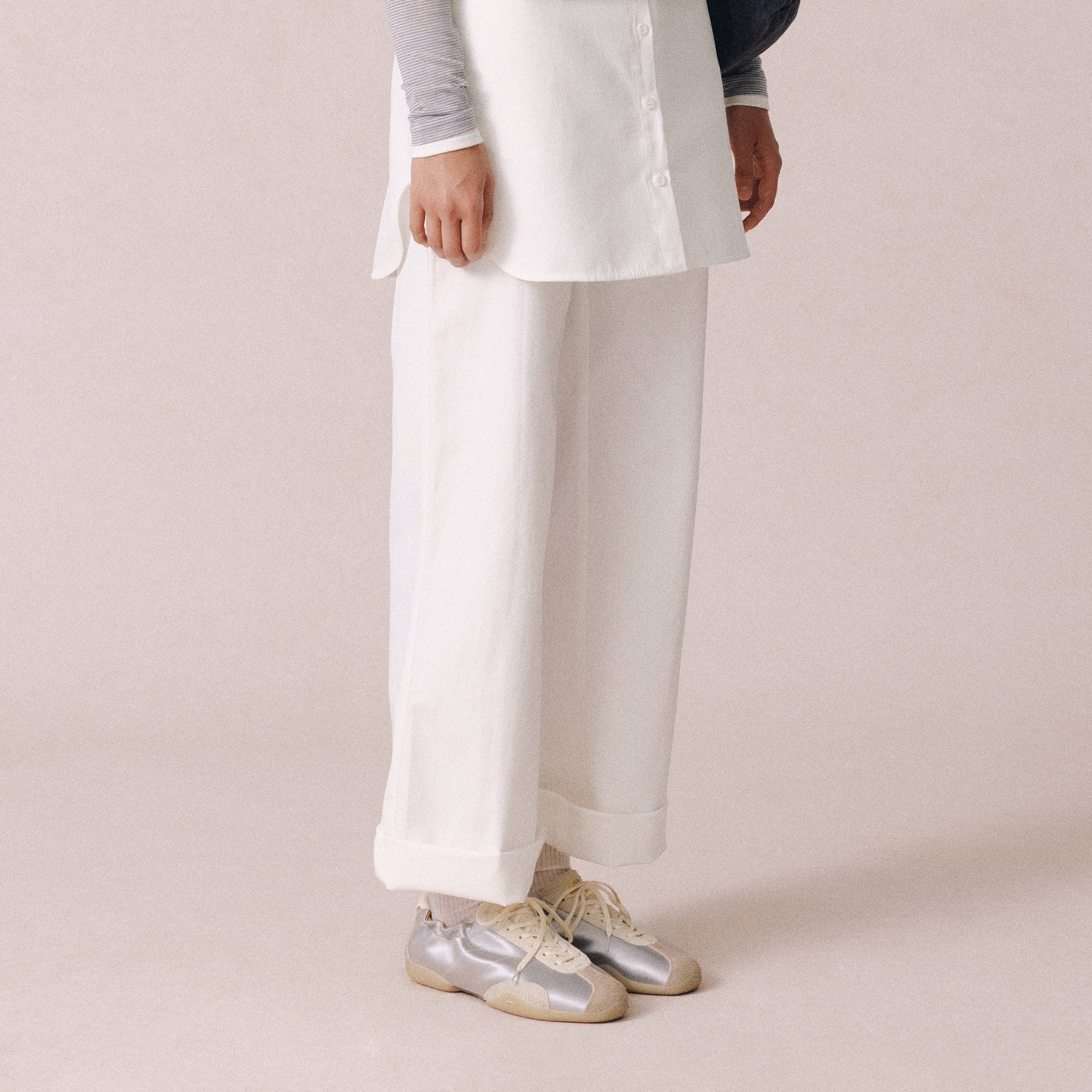 A silver satin upper with the cool luster of minted coins, paired with suede and chrome-free leather for a refined texture. Unlined construction showcases the authentic feel of leather—soft yet supportive. “Pouching” elastic detail at the collar offers a gentle embrace, with subtle gathers adding a relaxed touch. Leather-faced insole with 5mm Ortholite and a cork midsole enhances comfort, while the updated one-piece rubber outsole provides a softer, foot-hugging fit. The elongated, arch-tapered silhouette completes the elegant profile.